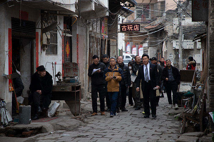 与会专家学者在弋阳古城大巷街进行实地探访和了解