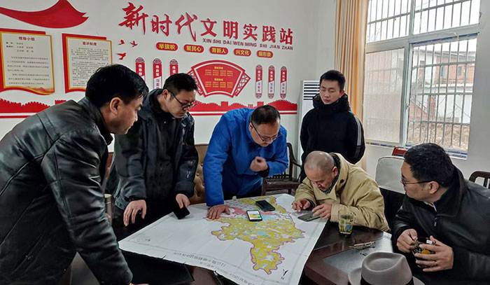 陈炯与付店镇人大主席刘建、付店镇自然资源所所长吴辉等同志研究土地规划