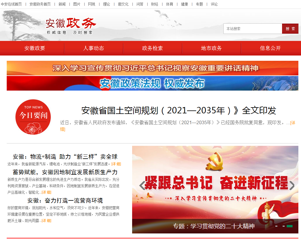 1.政策信息服务。精心做好省委书记、省长报道集以及“安徽政务”“新闻发布厅”等专栏,认真做好安徽省人民政府新闻办公室新闻发布会直播,及时、准确宣传报道党委、政府重大决策部署。中安在线网站、中安新闻客户端等开设“安徽政要”“新闻发布会”“政策法规”等专栏,及时准确刊播安徽省内16个地市各类政务信息和民生信息。
