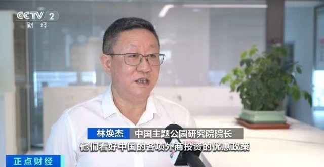 中国主题公园研究院院长林焕杰:他们看好中国的各项外商投资的优惠政策,也看好中国有庞大的游客基数,而且我们国家经济的增长也让国际投资商看到了希望。