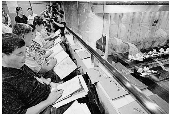2003年8月29日,15名公民在省十届人大常委会第五次会议第一次全体会议旁听席上。