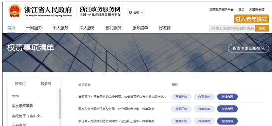 继2014年6月在全国率先晒出省级部门权力清单后,2014年10月31日,浙江43个省级部门的责任清单在浙江政务服务网上向社会公布,这是全国出炉的第一张责任清单。公布的省级部门责任清单包括:43个部门的543项主要职责,细化具体工作事项3941项,涉及部门职责边界划分的事项165项,编写案例165个,建立健全事中事后监管制度555个,公共服务事项405项。
