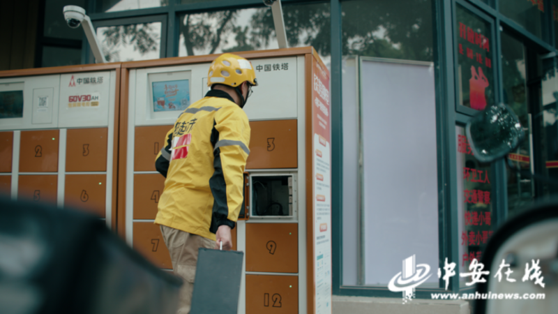 在这座爱心驿站旁边,由安徽铁塔设置的智能换电柜,格外引人注目。外卖小哥在驿站休息的间隙,只需15秒,就能快速更换电池,为电动车续航。