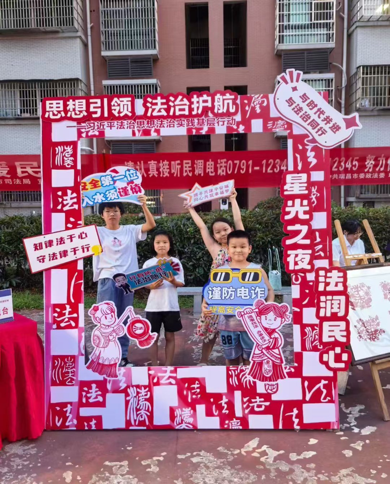 8月29日晚,瑞昌市司法局协同政法委、公安局、检察院、法院深入赛湖街道东方社区,举办“政法干警进社区,民生问题面对面”活动,通过“普法嘉年华+座谈交流”模式,实现政法服务与居民“零距离”互动,切实听民声、解民忧、办实事。