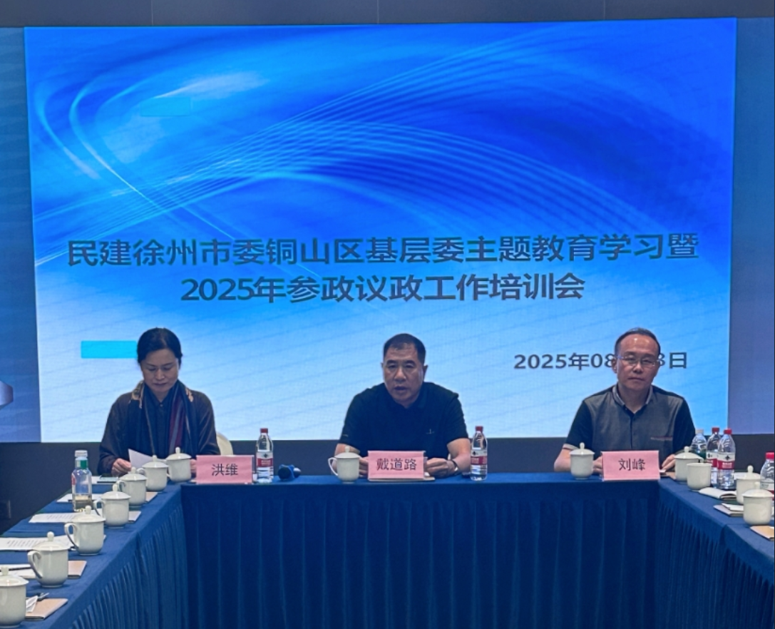 8月3日下午,民建徐州市委会铜山区基层委员会在会员企业——徐州开元名庭酒店召开参政议政工作培训会议。民建徐州市委会副主委戴道路出席会议,会议由铜山区基层委主委洪维主持,铜山区基层委30余名会员参加会议。
